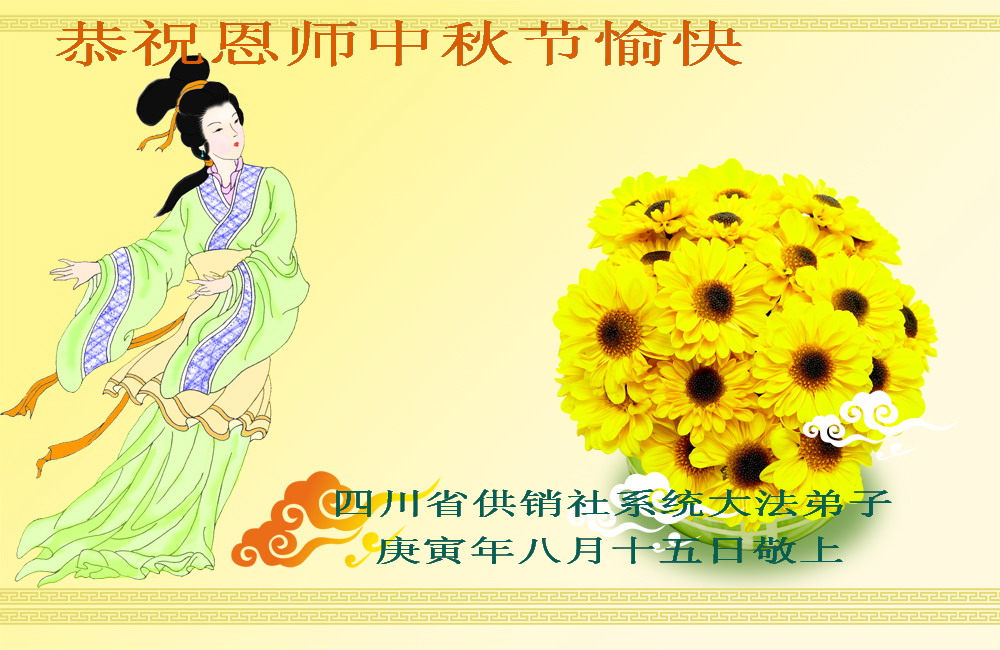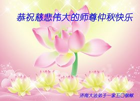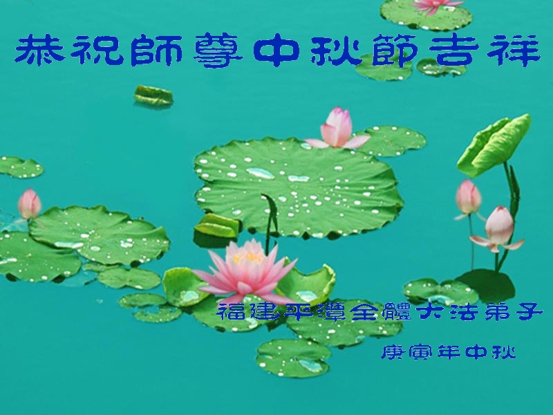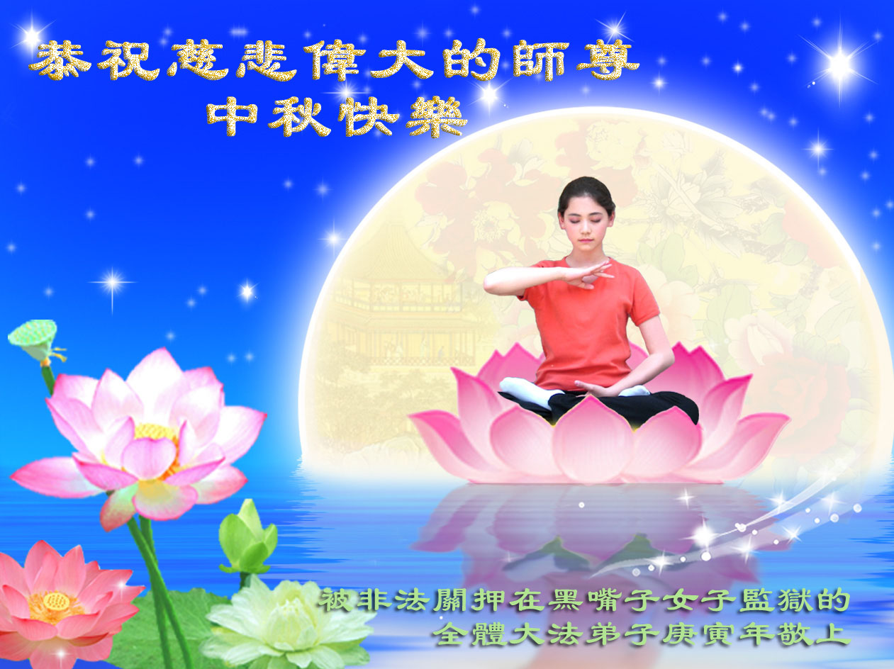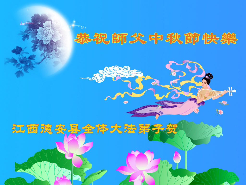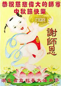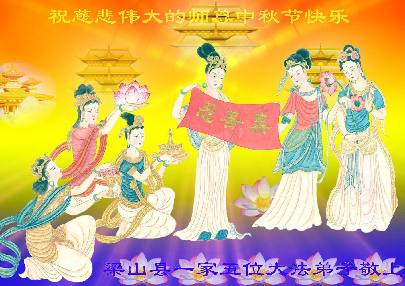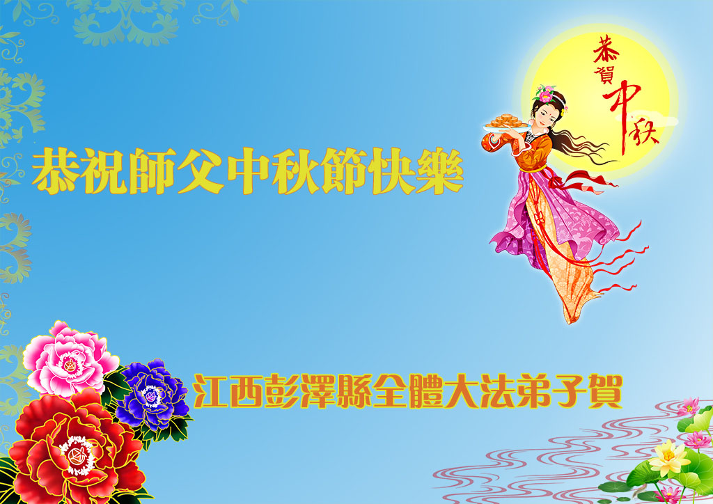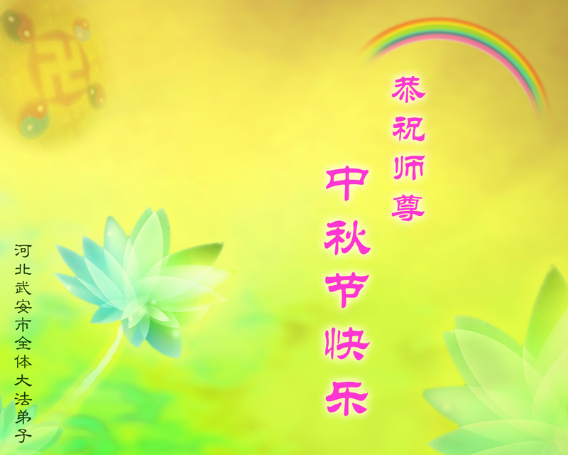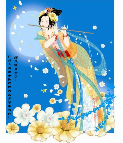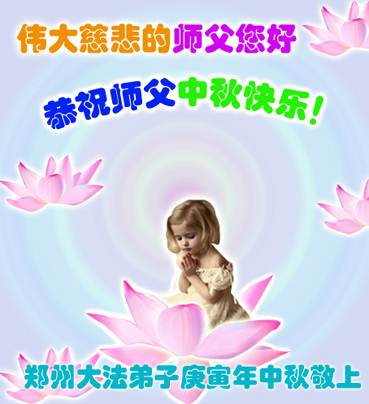尊敬的师尊:我们很想念师尊,谨代表广州荔湾区全体大法弟子敬祝您中秋节日快乐!广州的邪恶中共正在利用亚运会的名义对全广州地区大法弟子進行疯狂迫害,但我们会按照师尊的开示,继续做好三件事,正念正行,将真相带给更多善良的人们。