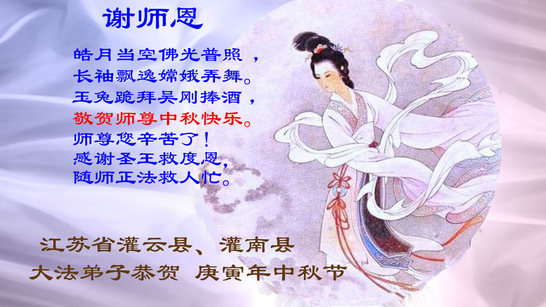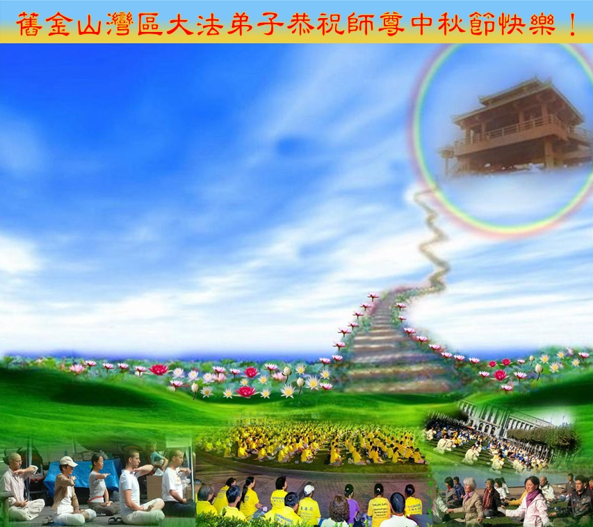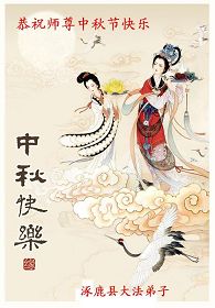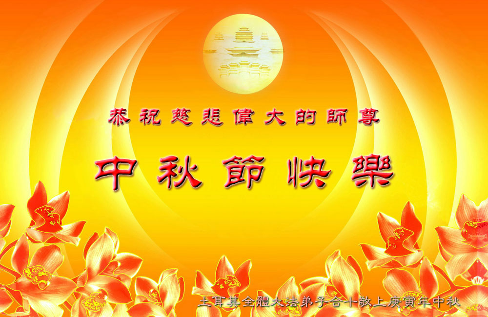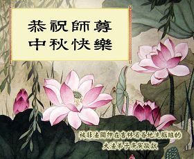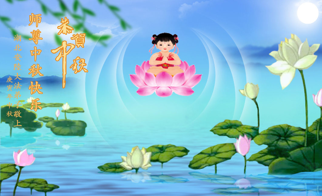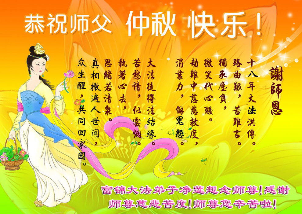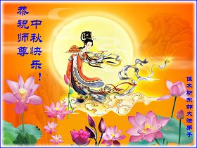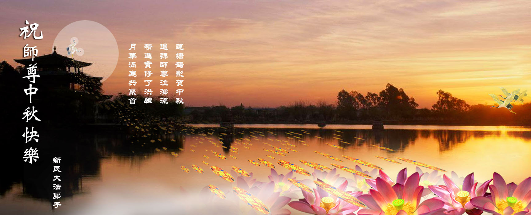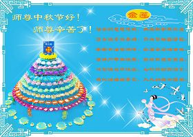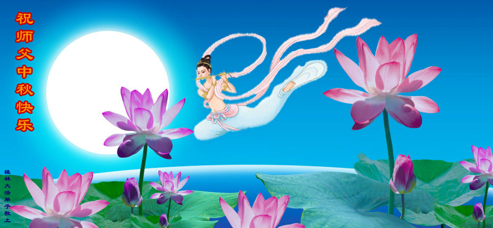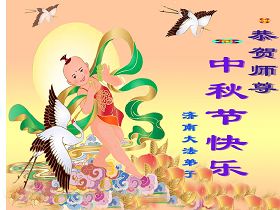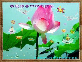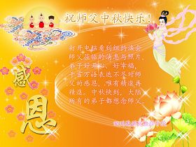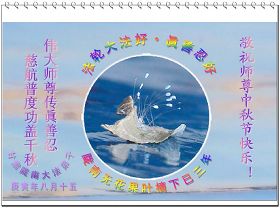 师恩洪大难言报,唯有精進实修谢佛恩!在中秋节来临之际,我们恭祝慈悲伟大的师尊中秋节快乐!我们一定遵照师父的要求,做好三件事,向内找,整体配合好,广传真相,救度更多的众生,完成我们的史前大愿,圆满随师还。