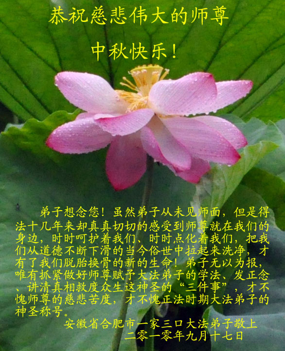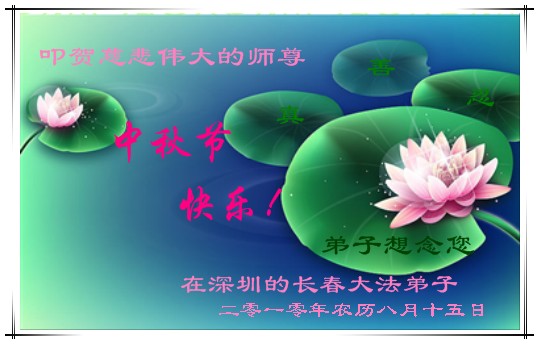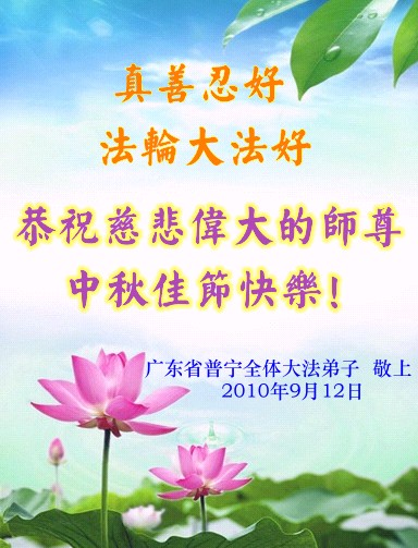 <英文版: http://www.clearwisdom.net/html/articles/2010/9/23/120177.html>华南大法弟子恭祝师尊中秋快乐(155地)