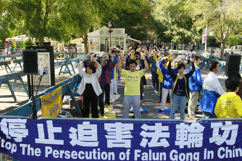 ![]() 法轮功学员在联合国广场呼吁制止中共迫害法轮功 |