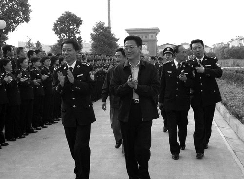 ![]() 湖北省“610”头目杨松(中)到湖北省女子劳教所指挥迫害 | ![]() 杨松 |