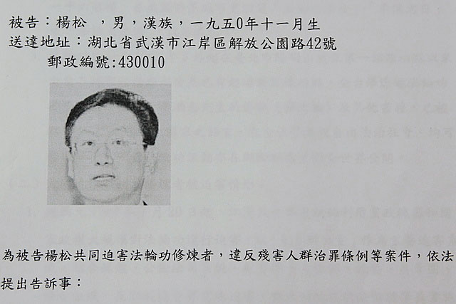 ![]() 控告湖北“六一零办公室”头子杨松的诉状 |