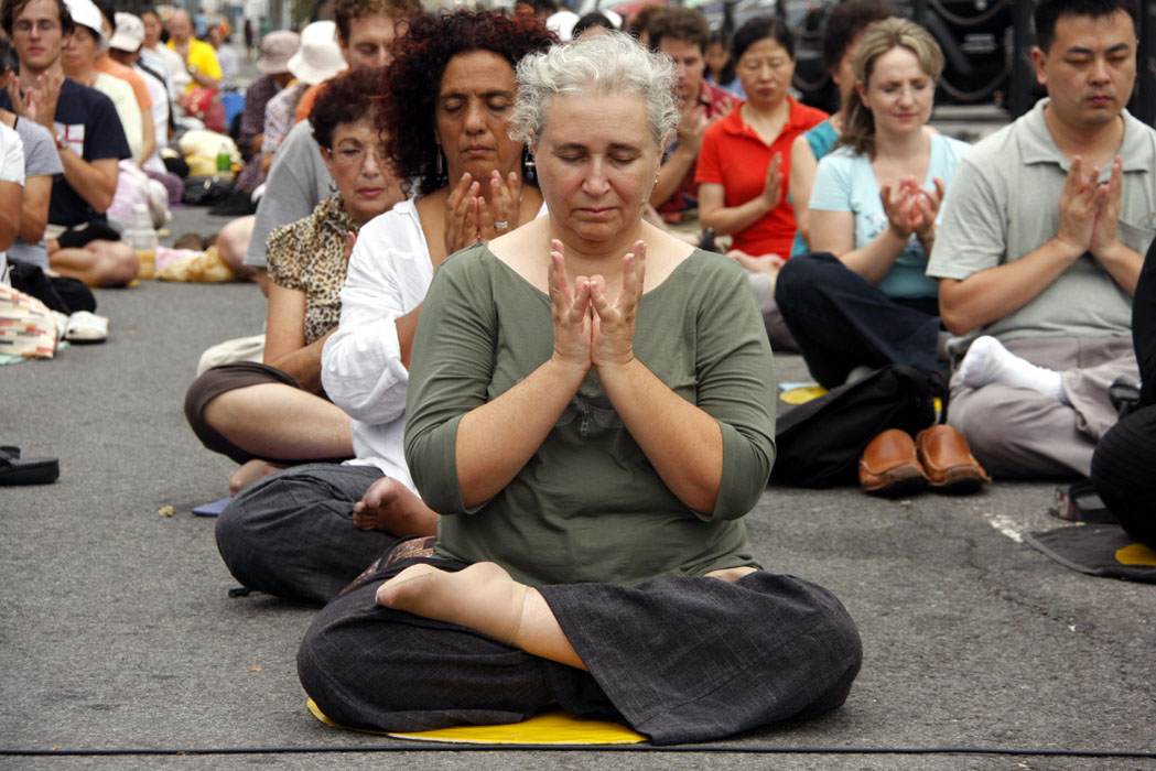 法轮功学员马春梅说:今晚在这心很静,一心想着要清除所有空间的邪恶,救度更多的众生。看到来自世界各地的同修,心里很高兴。