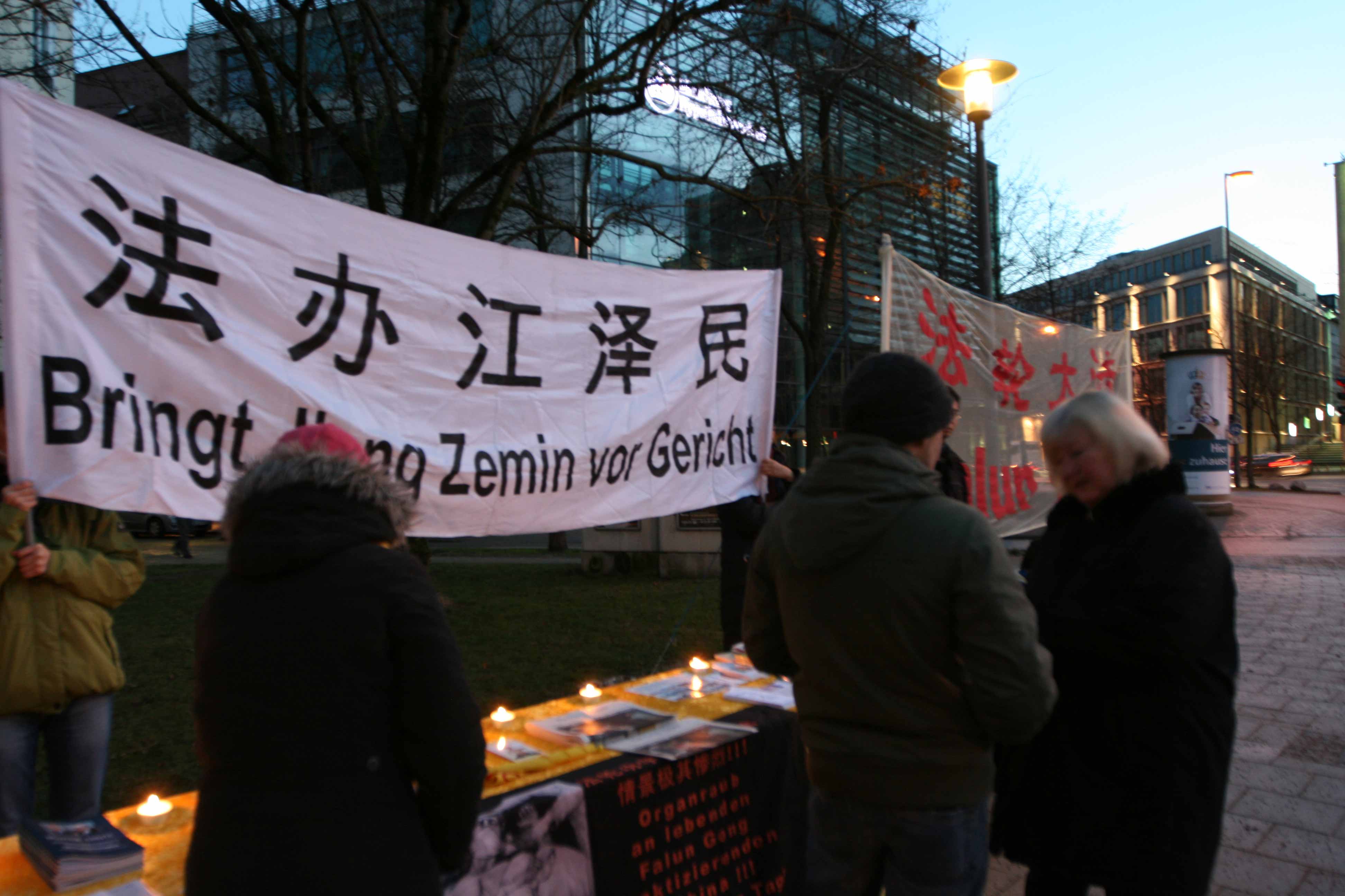 活动组织者陈先生表示,举办这次活动的目的是制止中共继续迫害法轮功,同时呼吁巴伐利亚州政府正视中共大规模迫害法轮功的人权问题。陈先生还特别强调:“‘法办江泽民、罗干、刘京、周永康’是我们希望中国代表团带回北京的信息,让参与迫害者明白,无论天涯海角,无论日久天长,迫害法轮功的罪行必将被追查到底。”