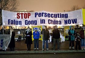 法轮功学员呼吁奥巴马重视法轮功受迫害的问题。他们说:“对本国公民的生命连最基本的同情都没有,我们怎能期待中国成为一个负责任的伙伴?法轮功受迫害是中国所有问题的根源。我们必须结束这场迫害。”