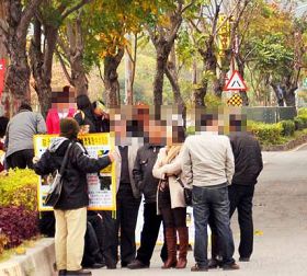 当天一位年轻学员也成为大陆游客质疑的对象:“他这么年轻不可能是退休人员吧!”年轻学员平和地说:“您忘了今天是星期天吗?我在周休的假期不休息,也是为了帮助你们了解真相自愿来的,平常你想要在这儿看到我还看不到呢!”大陆游客这才不吱声了。