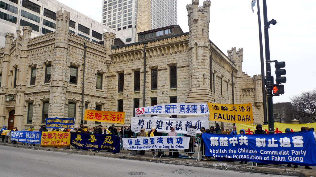 美中法轮大法学会负责人杨森表示: “我们呼吁所有有良知的人,包括美国大众,包括奥巴马,不要忘了人权是第一重要的。很多人被中国的虚假繁荣所欺骗,不敢站出来讲人权问题,我们今天也想让芝加哥市民知道,这场迫害还在继续,这场迫害必须马上停止。我想有机会见到胡锦涛,学员也会高喊停止迫害法轮功!法办江泽民、罗干、周永康、刘京。解体中共,停止迫害。”