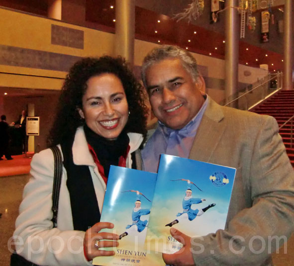 ![]() 歌唱家普琳•阿德仁达(Paulina Aldarado)与先生鲁迪•阿德仁达(Rudy Aldarado)赞叹神韵晚会的十全十美 |
