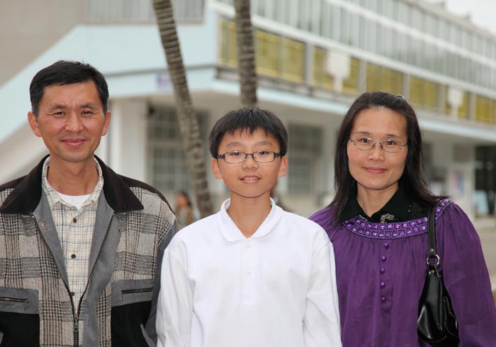 ![]() 曹金珠女士(右)全家福照片,左边是方福杉先生,中间是正就读于台湾飞天艺术中学音乐组国一的老幺方威腾 |