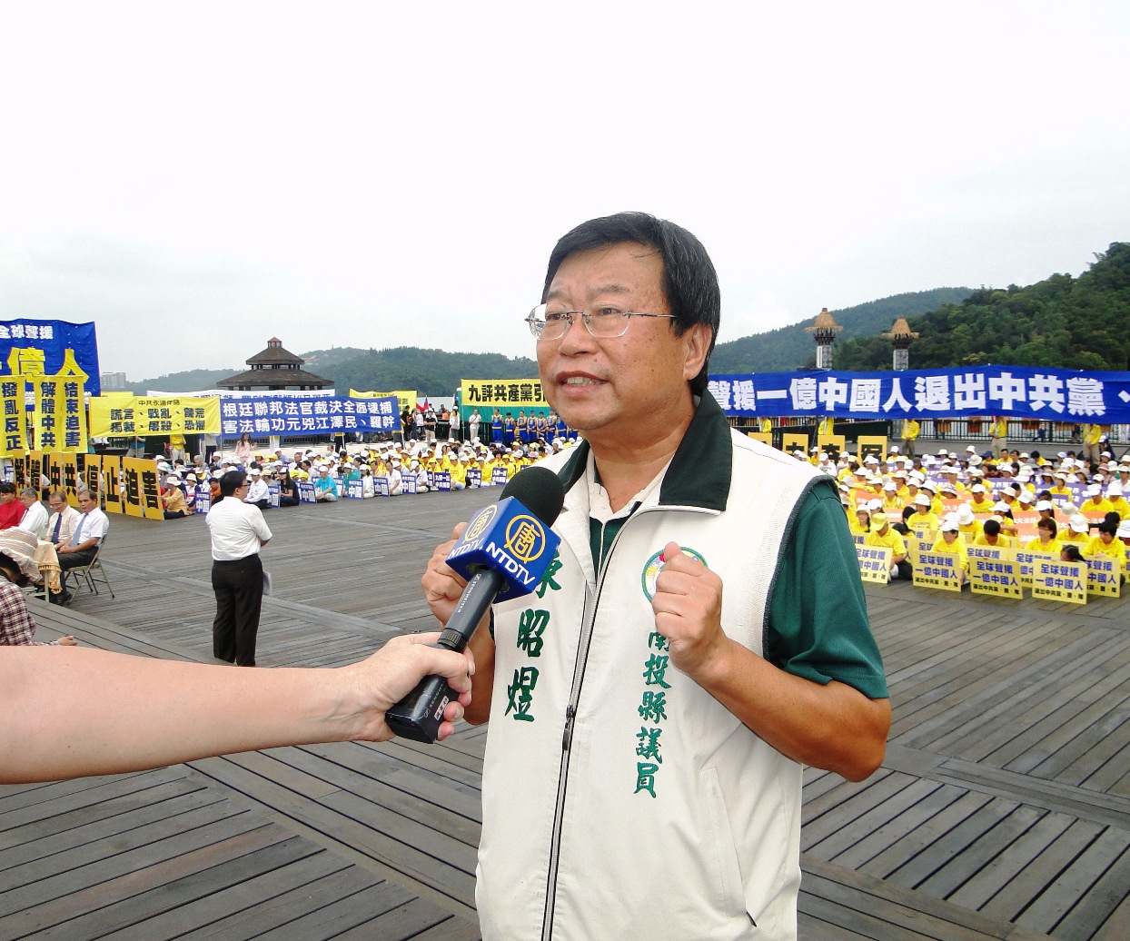 在地的南投县议员陈昭煜到集会现场声援,他表示看到这么多法轮功学员被共产党用残酷手段打压而牺牲,他感到很痛心。他希望大家共同努力,用更多的力量让更多中国人能退出共产党,早日获得人权。陈昭煜认为,不论中共如何钳制言论,思想与灵魂是无法摧残的。他呼吁大家共同努力,来维护人权这核心价值。