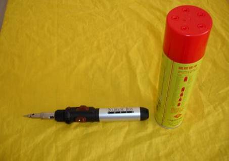 同时买一桶打火机气体(丁烷气)备用。见下图。