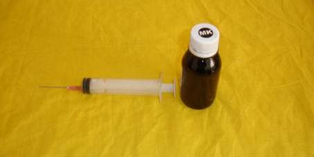 针管的容量要尽量的大,针头要粗的、短的。墨水不要有杂质,废墨最好。见下图。