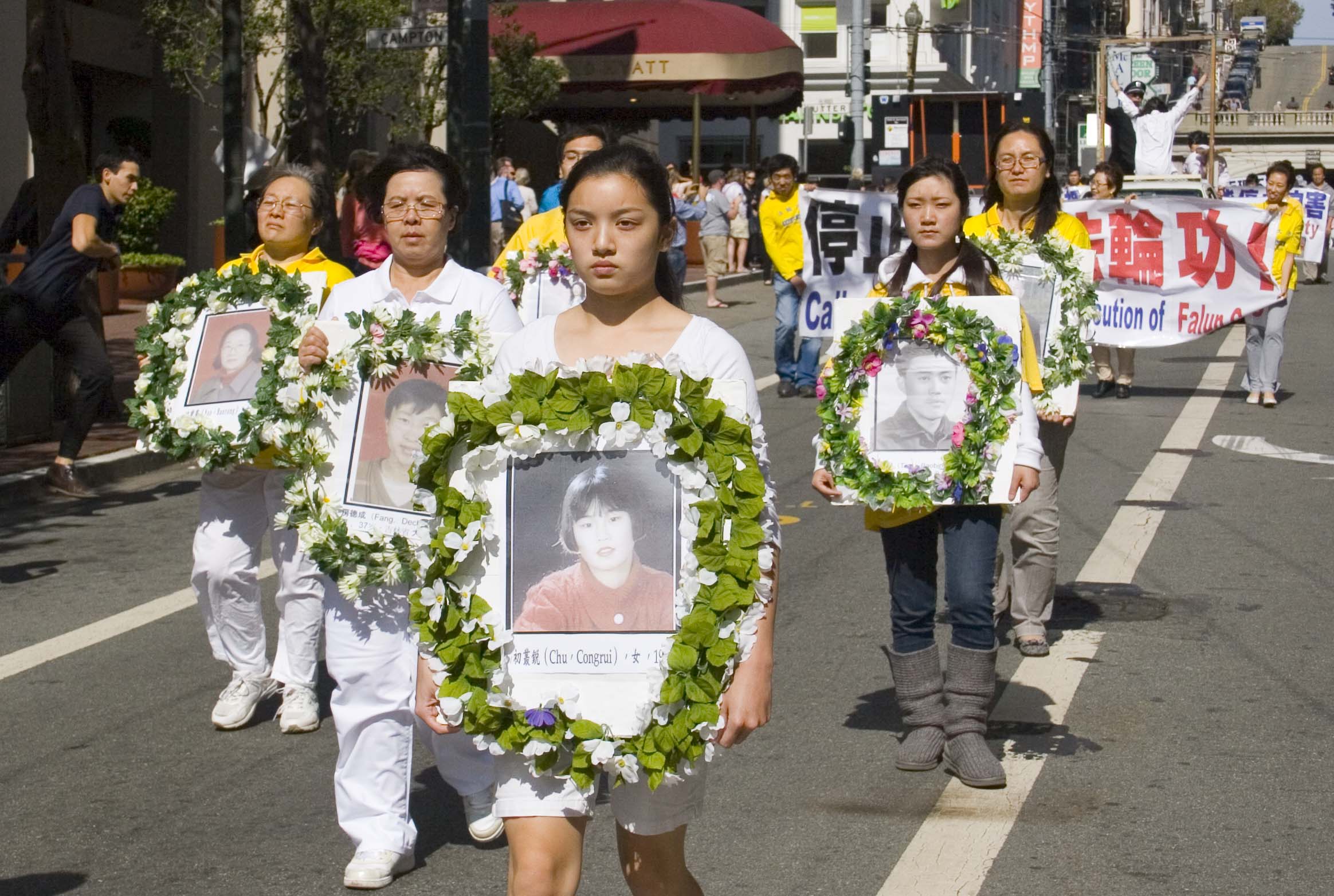 ![]() 法轮功的游行队伍行走在旧金山唐人街上 |