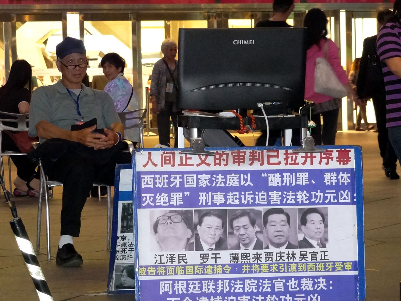 一位大陆游客手拿着《·九·评*共产党》跑来问秀丽说,法轮功真的生病不用看医生吗?秀丽说,“炼功可以祛病健身,但你如果有病还是要去看医师。我们有五套功法可以学炼。”并指着说,“那边有学员在炼功,可以去学,是义务教功。”这位游客说,你这样讲我相信了。后来他走到炼功学员那里观看一会儿,后来又问秀丽,难道你们都不用吃饭吗?都不用工作吗?秀丽说:要吃饭工作啊,我就是下了班后才过来的啊,很多学员是下班后又赶到这里。而白天到这里的学员许多是退休人士,他们是为了帮助中国人了解真相得福报,放弃在家吹冷气含饴弄孙,大热天跑来这里,不是为了自己,只为了你们了解事实的真相,不被中共恶毒谎言欺骗,劝你们远离中共邪灵而拥有美好的未来。