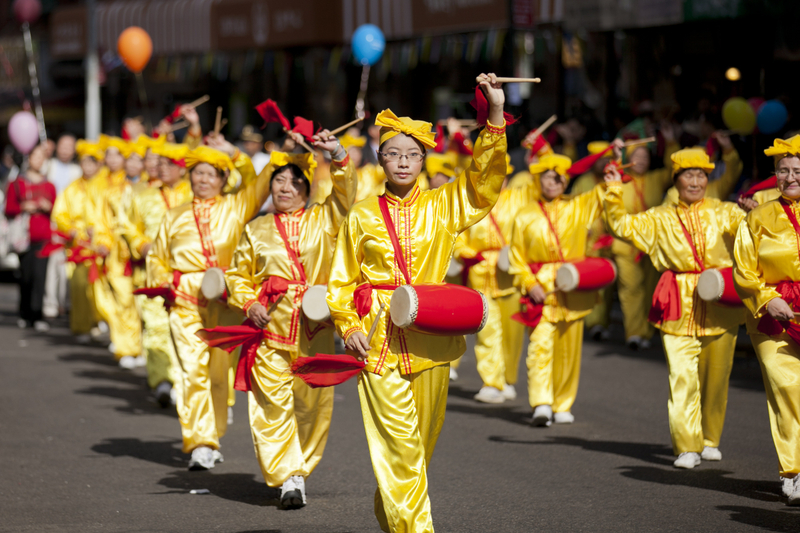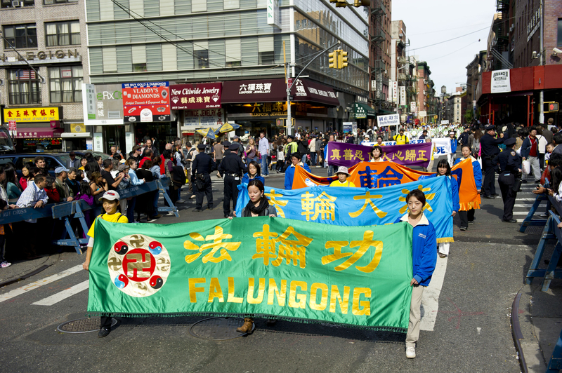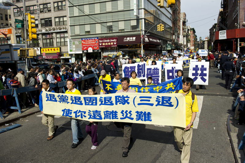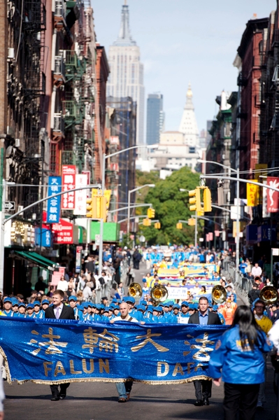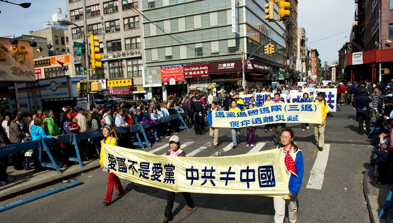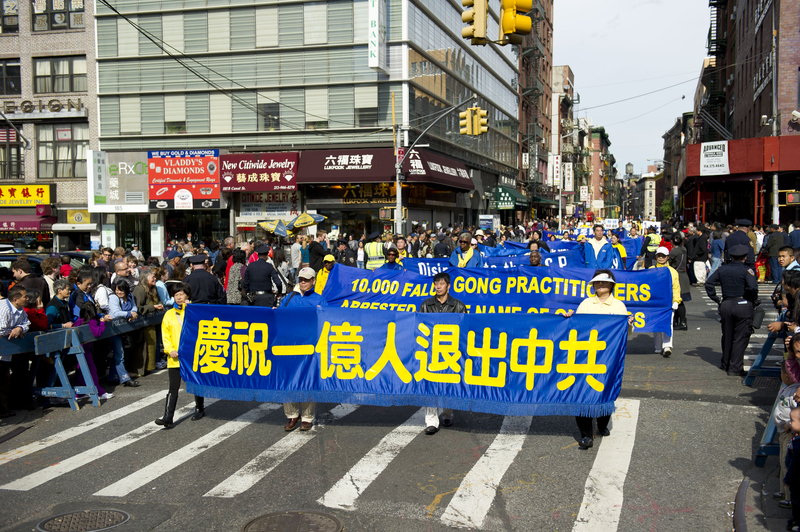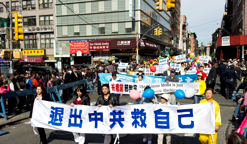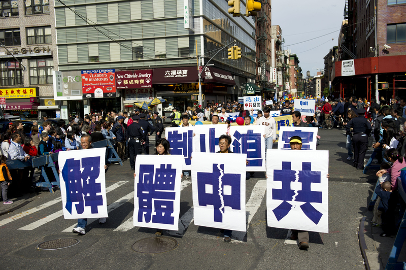 ![]() 游行队伍穿过纽约中国城 |