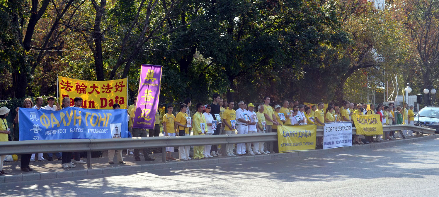 九月二十四日,百余名参加东欧法会的学员一早来到Herastrau公园集体炼功,并在中共驻罗马尼亚大使馆前举行集会,抗议中共长达十二年对法轮功的残酷迫害。下午,他们打着“法轮大法好”等横幅,从北京大街(Bulevardul Beijing)开始一直游行到维克多利亚广场,沿途很多罗马尼亚人驻足观看。