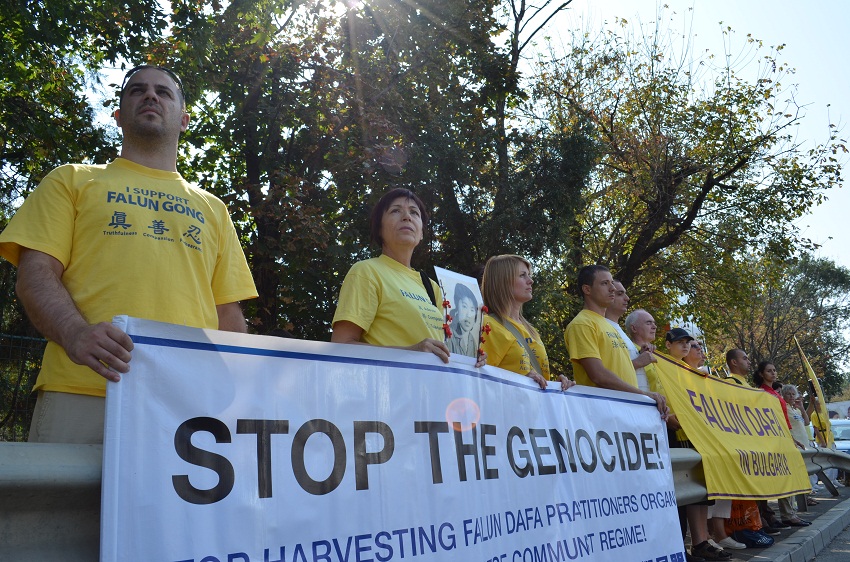 ![]() 东欧法轮功学员在中共大使馆前集会,抗议中共迫害法轮功 |