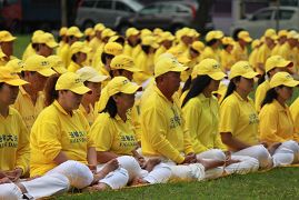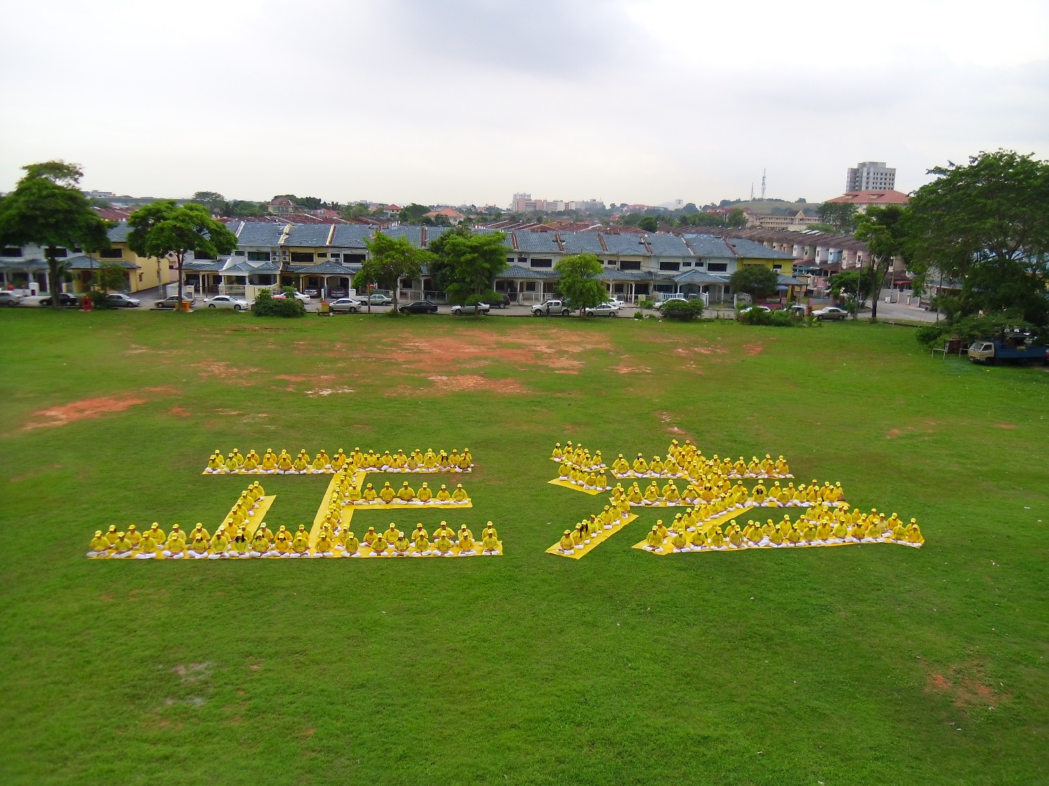 学员们共同将“正法”两字整齐地排出来,吸引了当地居民前来了解法轮功。他们对弘扬法轮大法的排字活动选择在他们的花园举行感到荣幸。