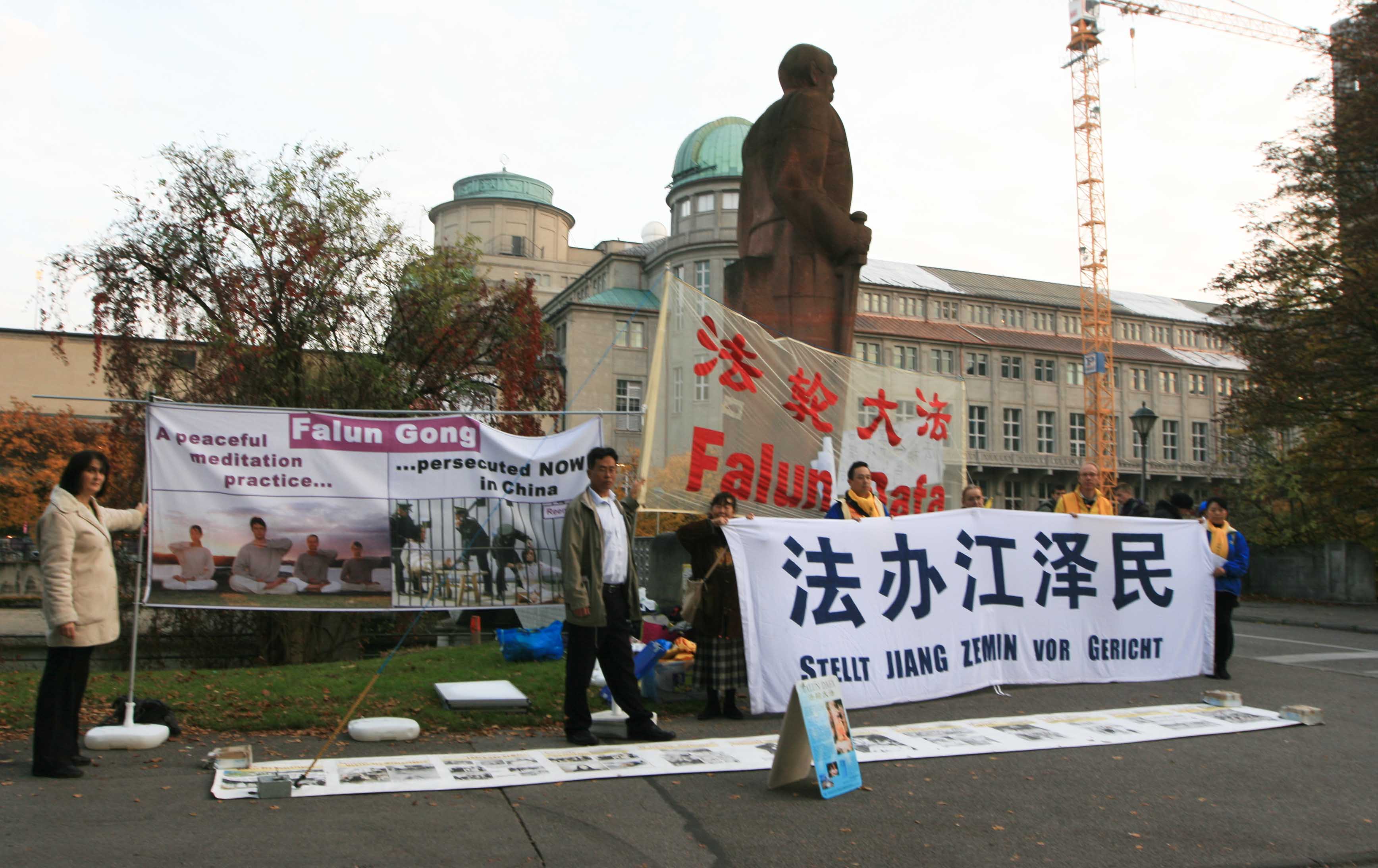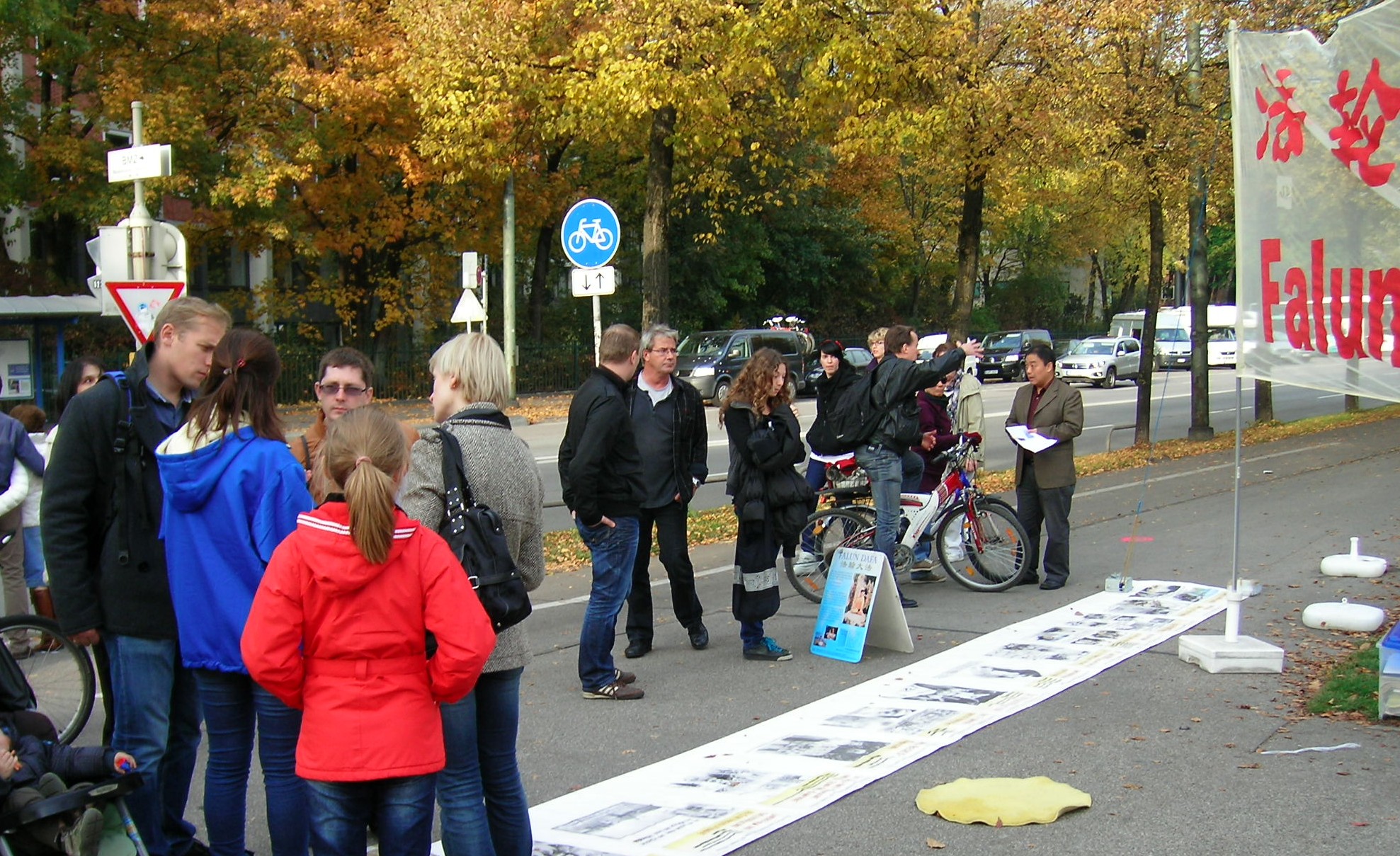 ![]() 法轮功学员们在慕尼黑德意志博物馆前的抗议 |