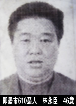 林永臣:610骨干份子,男,1965年生,46岁,三角眼,面目伪善,逻辑混乱。手机:13953235217