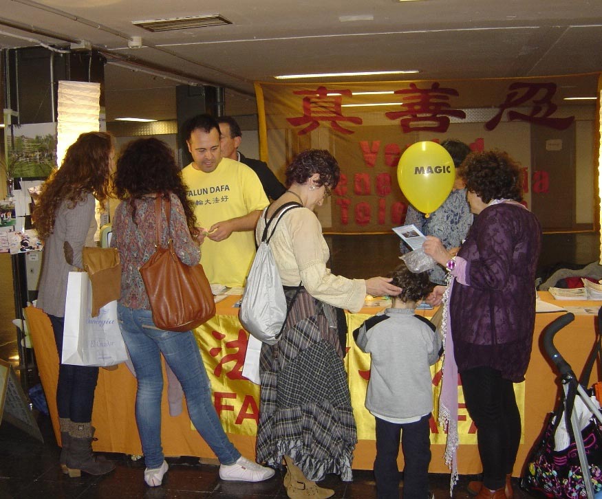 ![]() 巴塞罗那“神奇妙法”博览会上,人们驻足了解法轮功 |