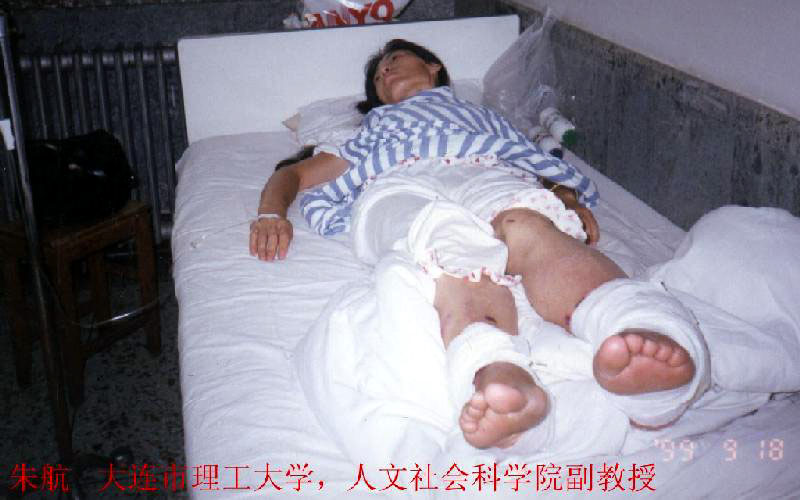 上面的照片就是在朱航入院的第二天拍的,就是因为这张照片,朱航的弟弟朱枫随后被非法抄家,家里的电脑被抢走。朱枫的妻子因为无法承受抄家带来的恐惧而同其离婚。