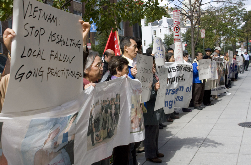 法轮功自二零零零年传入越南,在越南是合法注册的团体,但近年来日益受到越南当局的压制。据越南当局于今年四月份公布的一份文件显示,他们因承受中共压力而打压法轮功。十一月八日越南警察在中共驻越南使馆前,以暴力手段殴打并驱散大约五十名和平抗议的法轮功学员。