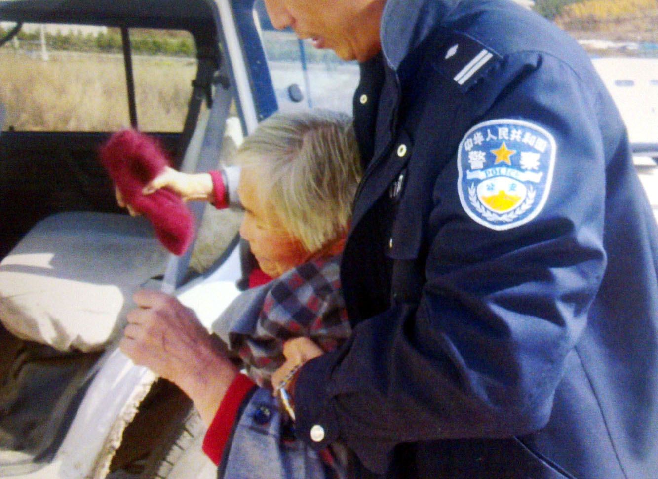 ![]() 陈国东把老人从车上拖下 |
