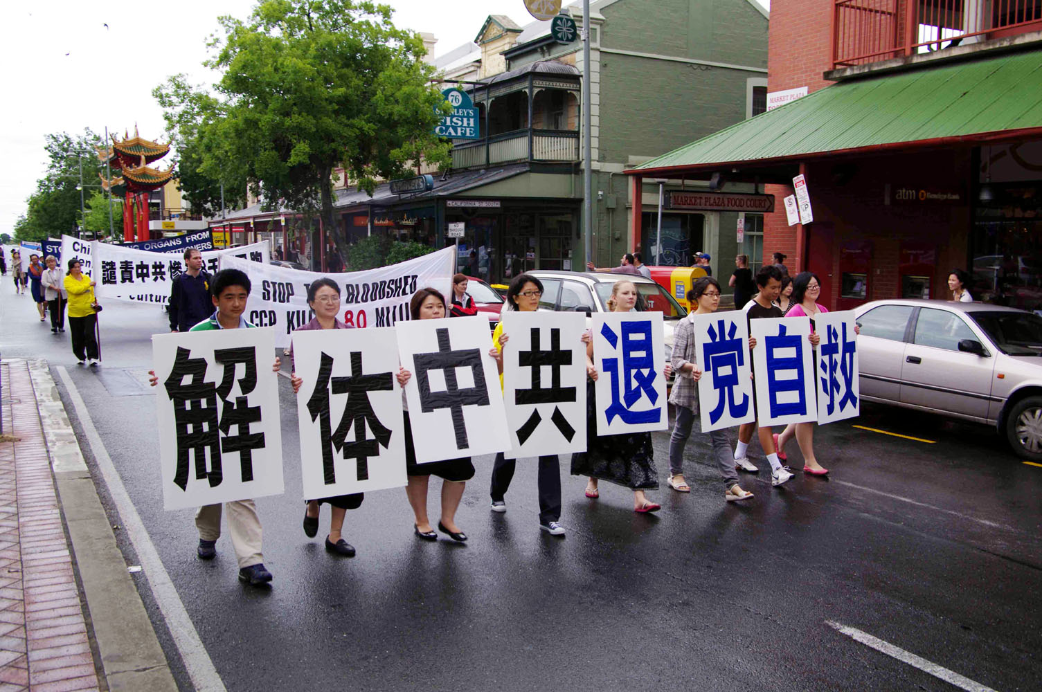 法轮功学员代表、退!党!义工代表、越南民主改革党代表、澳洲公民委员会主席等人士发言,揭露中共对正信、对良知的迫害,声援一亿五百万勇士退出中共。解体中共、退!党!自救的横幅传递着生命存留的信息,呼吁更多的中国同胞顺应天意、脱离中共。