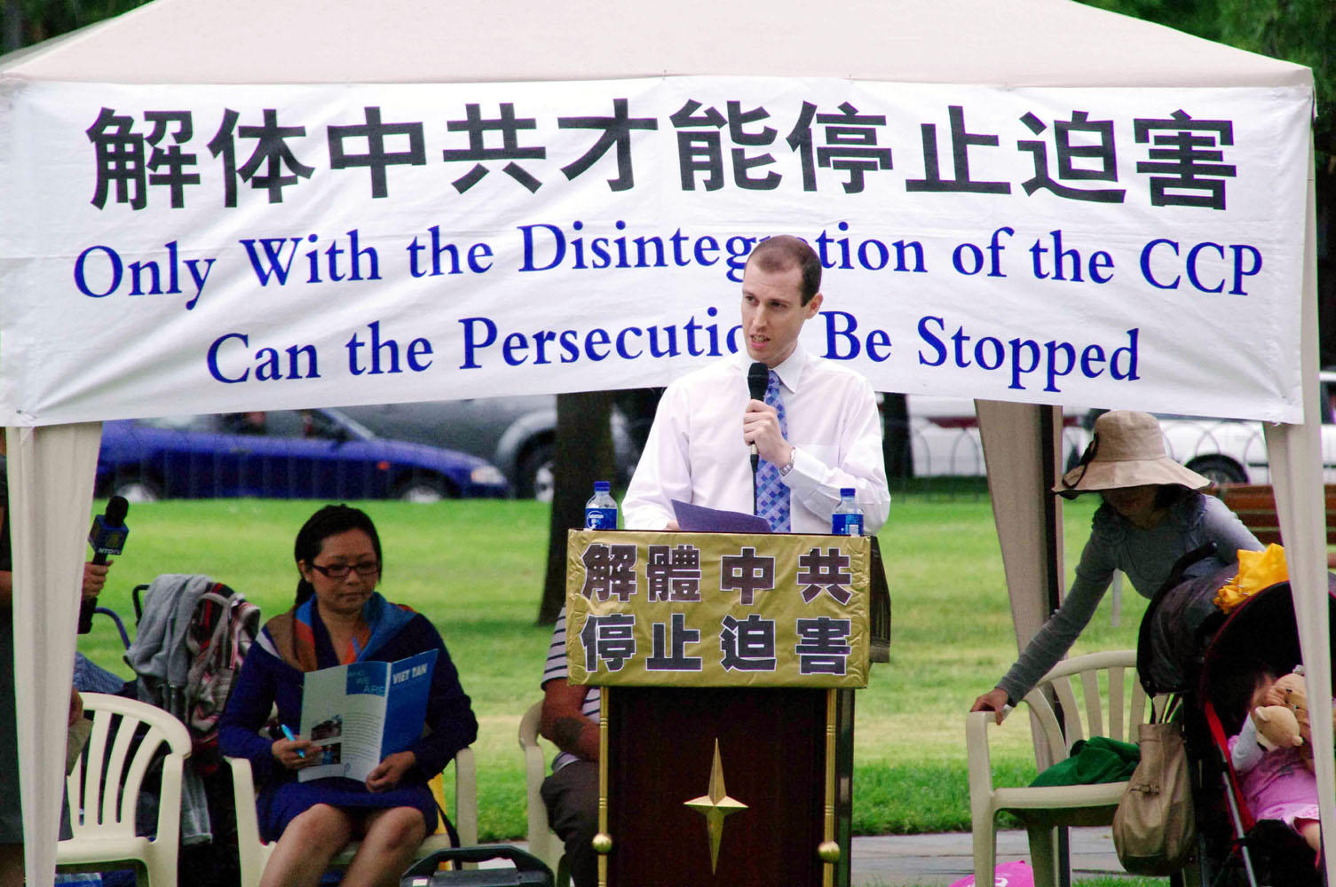 南澳公民委员会主席韦尔德(Damian Wyld)重申澳洲要坚守自由民主的基本理念,呼吁支持解体中共的退!党!运动;西藏民族社团代表卡玛(Karma)谴责中共对法轮功学员的迫害以及对藏人的迫害;