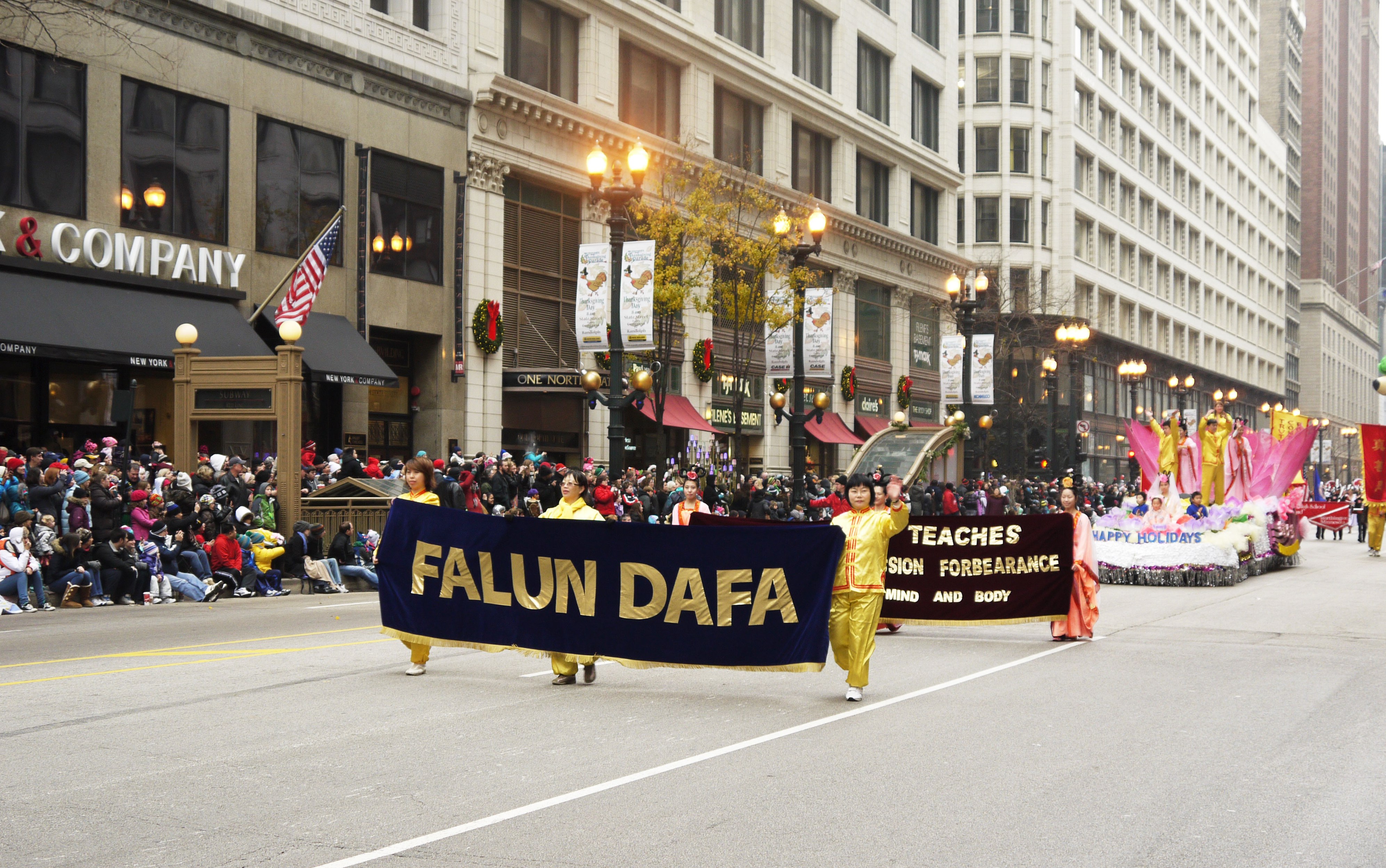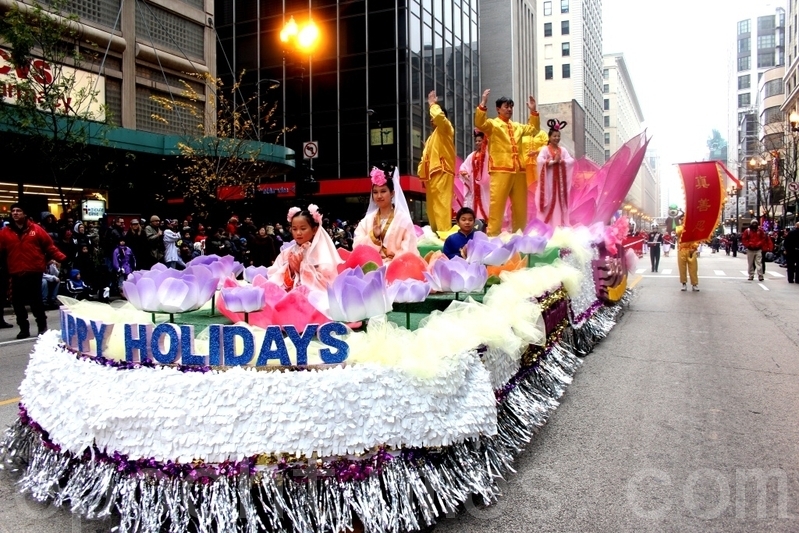 作为美国仅有的两个通过电视全程直播到百万家庭的感恩节游行之一,一年一度的“麦当劳”感恩节游行是芝加哥市以及美中地区规模最盛大的游行之一。申请团体要经过组委会的严格筛选才能争取到亮相的机会。二零零三年,法轮功首次在芝加哥感恩节游行中出现,其新颖独特的设计获得组委会的青睐,之后他们年年受邀,今年已经是第九年了。