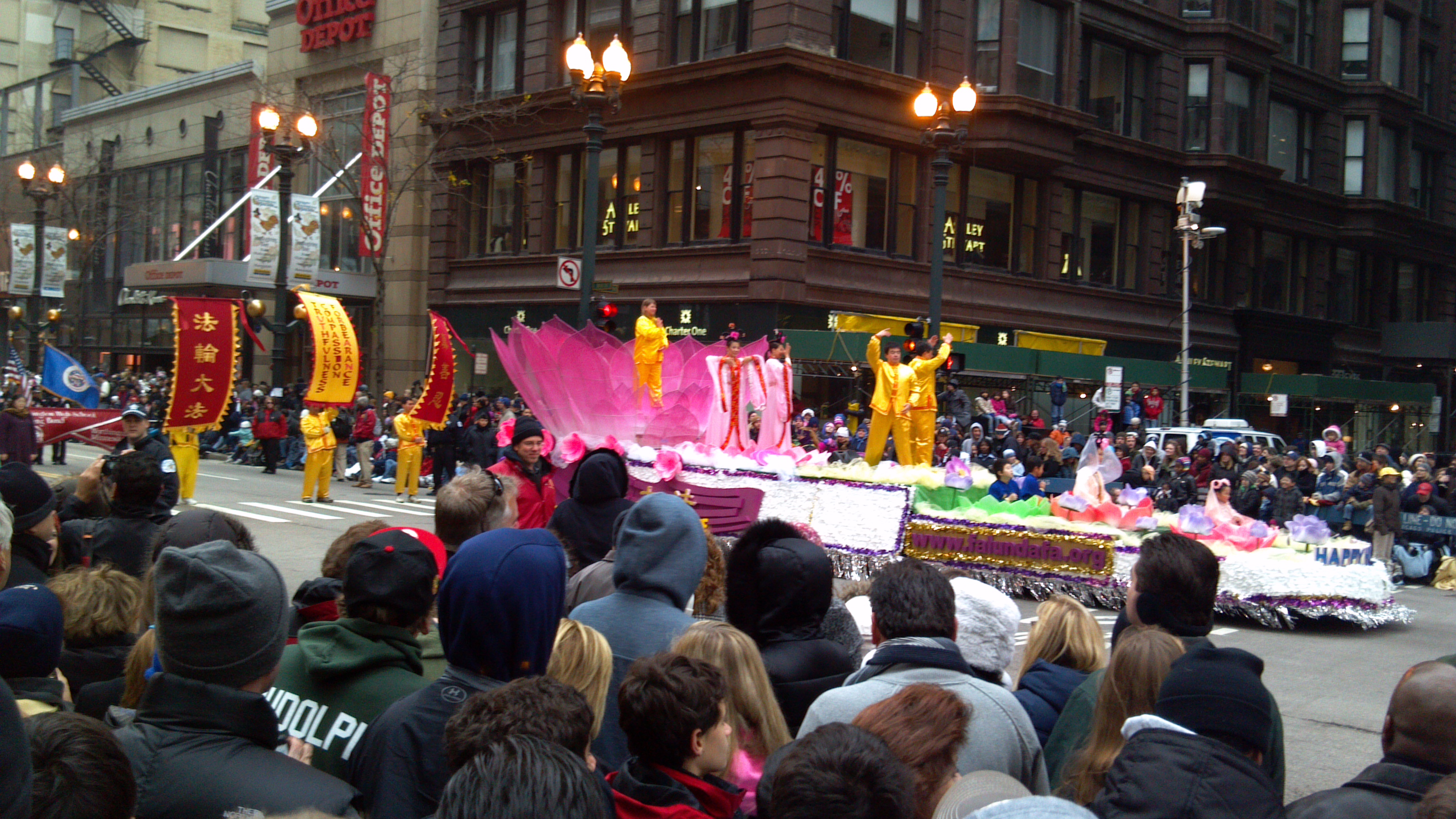 法轮功学员的花车上除了色彩鲜艳夺目的大莲花外,还装饰有各色小莲花,法轮功学员进行了功法演示和仙女表演。芝加哥最大的报纸《芝加哥论坛报》在其网站上发表了法轮功团队的花车的照片。数以百万计的电视观众也通过电视直播观看到了法轮功学员的风采。