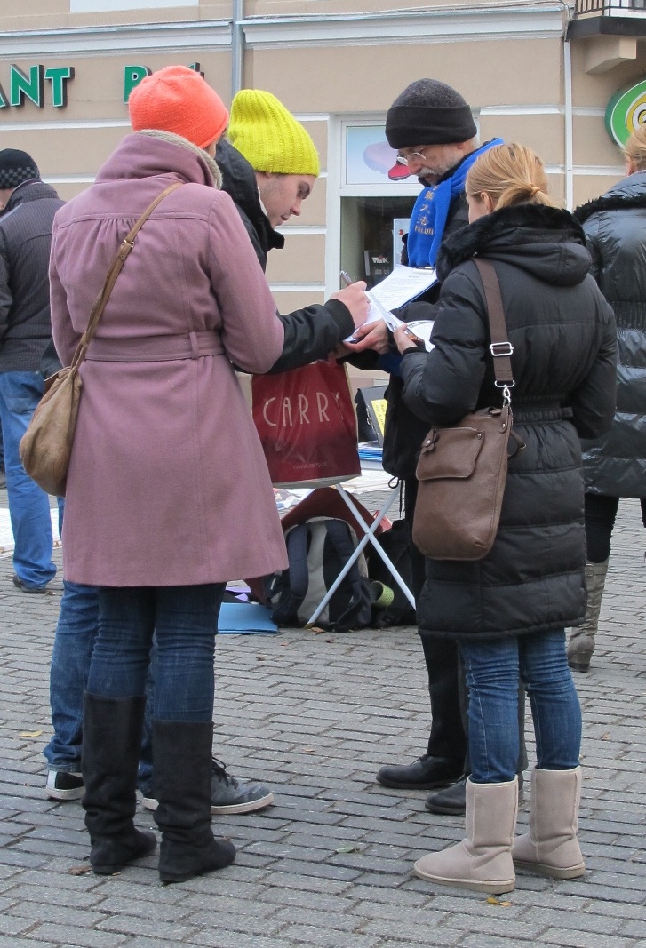 四个小时过去了,几百名凯尔采的市民听到了真相,其中有二百三十多人在征签簿上签名反对中共对法轮功的残酷迫害,征签台太小,很多人就在法轮功学员的手中征签簿上直接签名;还有很多人拿着法轮功传单表示回家后要上网进一步了解法轮功,他们会在明白真相后在网上征签簿上签名。