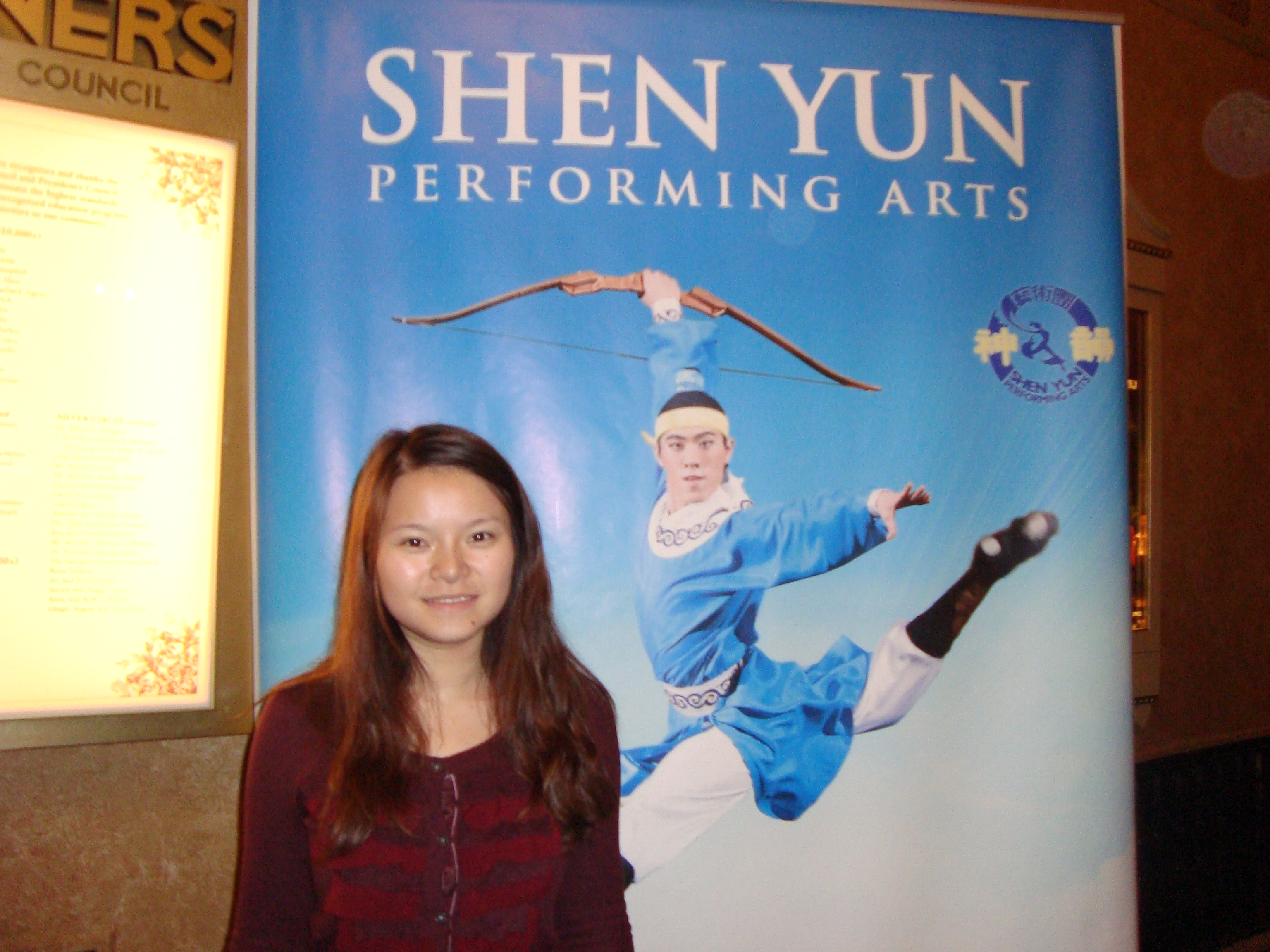 戴晓露说:“这是我第一次看神韵,我觉得很好看,有很多新颖的地方,象那个天幕,现场乐团配合舞蹈,都是新颖的,感觉很不一样。”