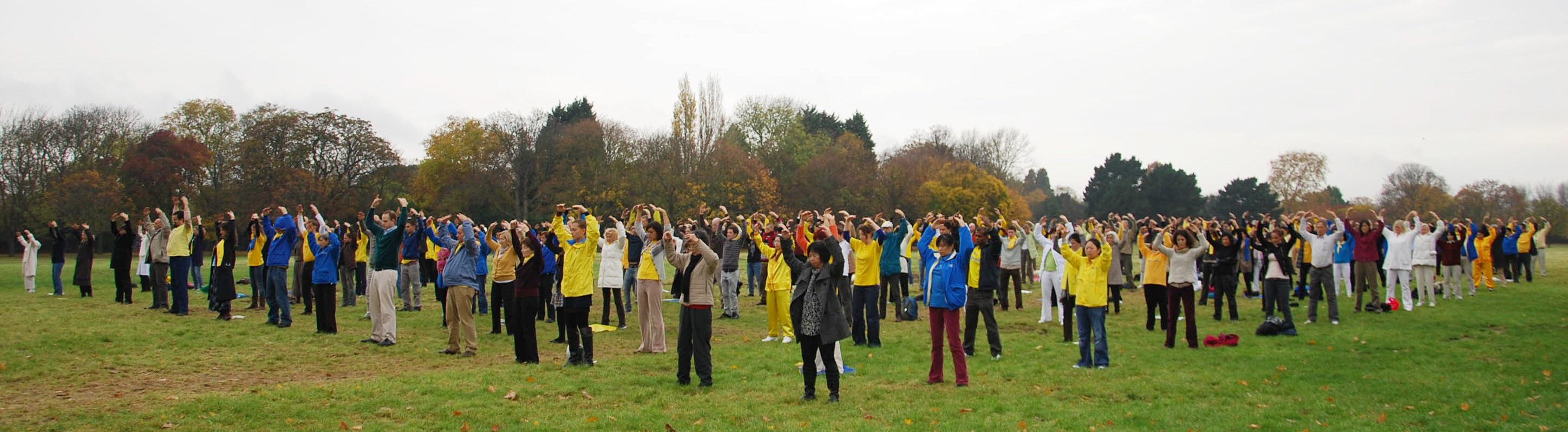 ![]() 欧洲各国法轮功学员在伦敦摄政公园(Regent’s Park)集体炼功 |