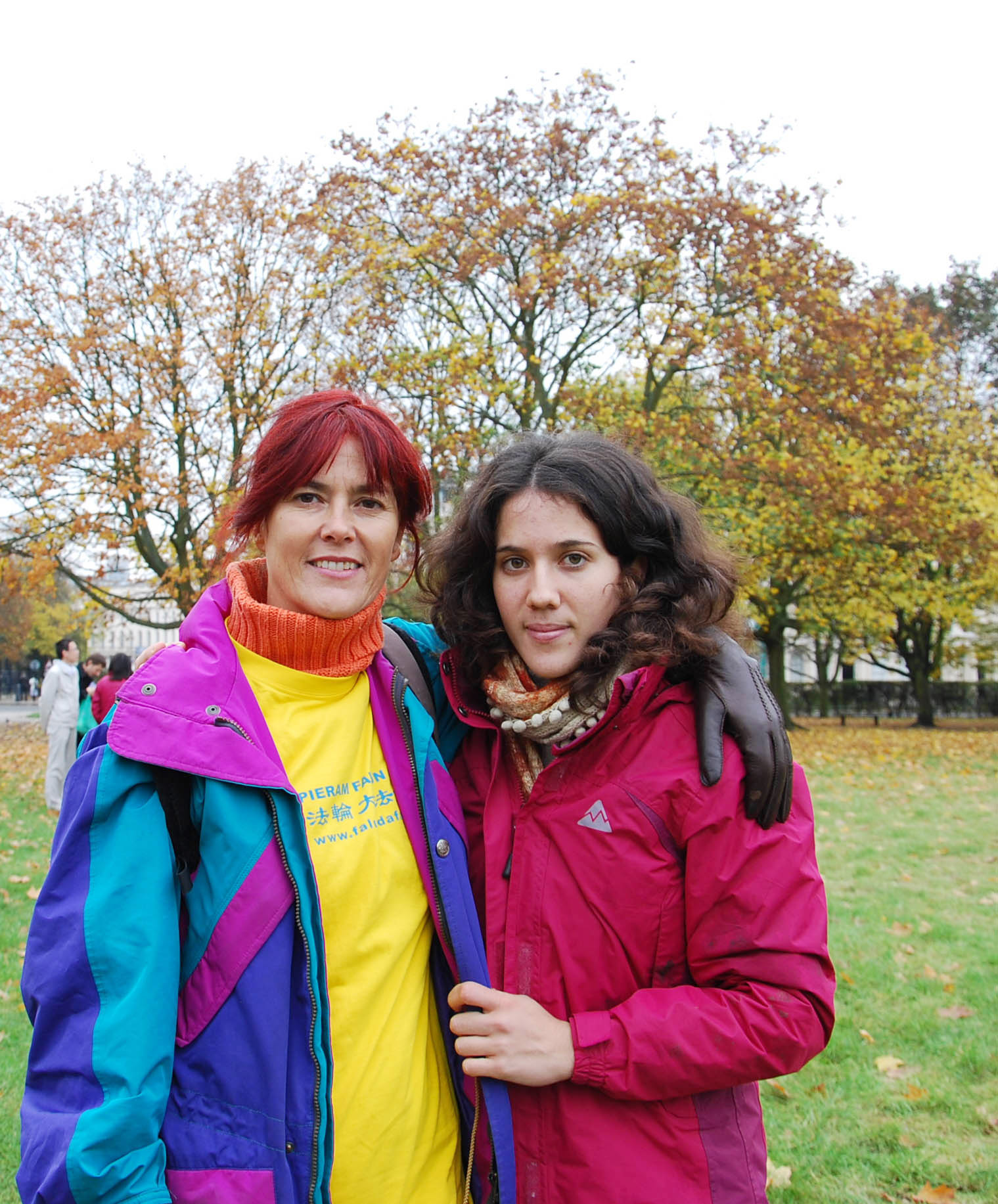 来自西班牙的蒂安娜(Diana)和母亲爱琳(Irene)都炼法轮功。蒂安娜炼功已三年了,她说法轮功让她明白了生活的意义,“真、善、忍”是她生活中最重要的部份。她离开家乡上了大学后,现在她在大学里建立了义务教功点,把大法的美好带给更多人。