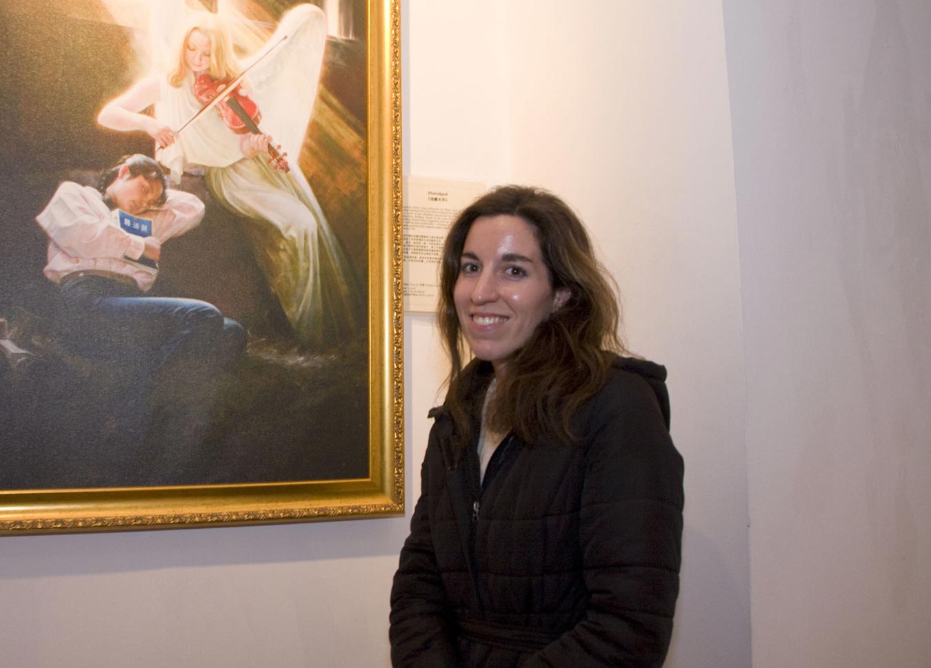 来自波多黎各的罗莎·迪杰萨斯(Rosa Dejesus)是一位学医的学生,来华盛顿探望男朋友。她说这些作品非常牵动她的情感,特别是“我要爸爸”那幅画,让她感到很悲伤。她很高兴能够了解到这些,如果不是这个画展,她还不会知道正在中国发生的这一切。作为医学院的学生,看到那些应该有慈悲心的医生却成了摘取法轮功学员器官迫害者,实在令人难以置信。