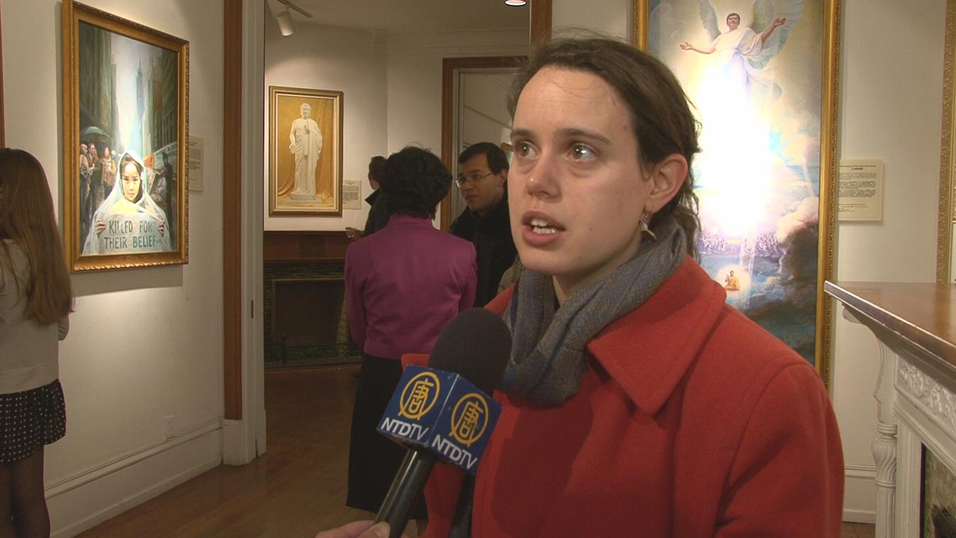 画廊老板安娜丝塔西娅·布莱德(Anastasia Bride)在这里已经几十年了,她告诉笔者:“这个画展非常令人震撼,同时也激发出许多的问题,人们在这个画展停留的时间远远超过其它的画展。通常人们只是进来随便看一下就走了,但这是一个如此令人大开眼界的画展,参观的人在这里停留很长时间,他们发出一系列的问题:‘为什么会发生这样的迫害?他们做了什么?’在华盛顿这里,人们想要了解这个世界。这个画展激发了人们想要了解中国的兴趣。”