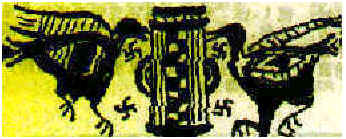 ![]() 小河沿文化陶器上的卍吉祥符,距今4500年左右。 |