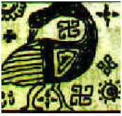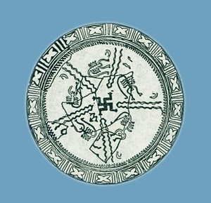 ![]() 霍比部落“预言石”中的卍字圆轮 |
