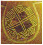 ![]() 罗浮宫收藏2700年前刻有卍形图案的古希腊扣型饰物 | ![]() 古希腊陶绘上的卍字符(网络图片) |