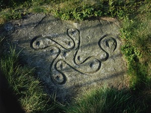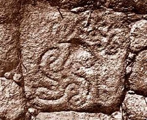 ![]() 英格兰约克郡发现的刻有“卍”的巨石,距今4000年左右。 | ![]() 葡萄牙发现的史前接近卍字符的神秘图腾,估计有万年以上历史。 |