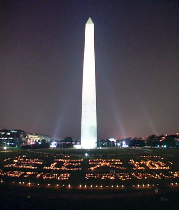 ![]() 2003年7月,法轮功学员在美国华盛顿大型排字组成“法正天地” |