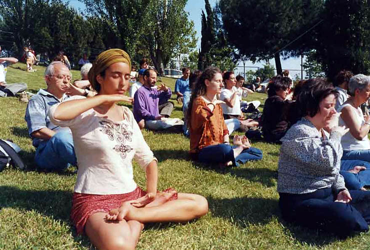 ![]() 西班牙法轮功学员演炼第五套功法 |