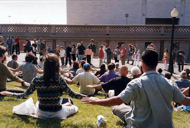 ![]() 法轮功优美的功法吸引了参观者们驻足观看 |