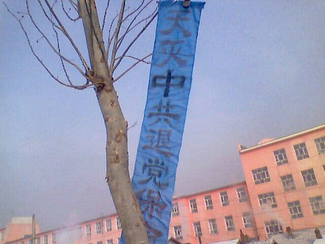 通讯员黑龙江报道)2011年黄历正月初十,黑龙江省牡丹江一小镇多处出现“法轮大法好”、“天灭中共,退