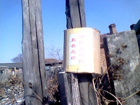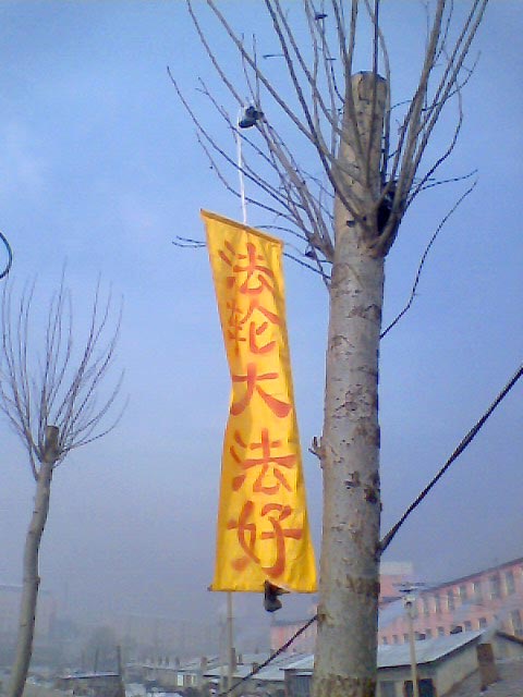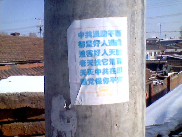 东北某地五月十三日随处可见法轮功真相条幅粘贴