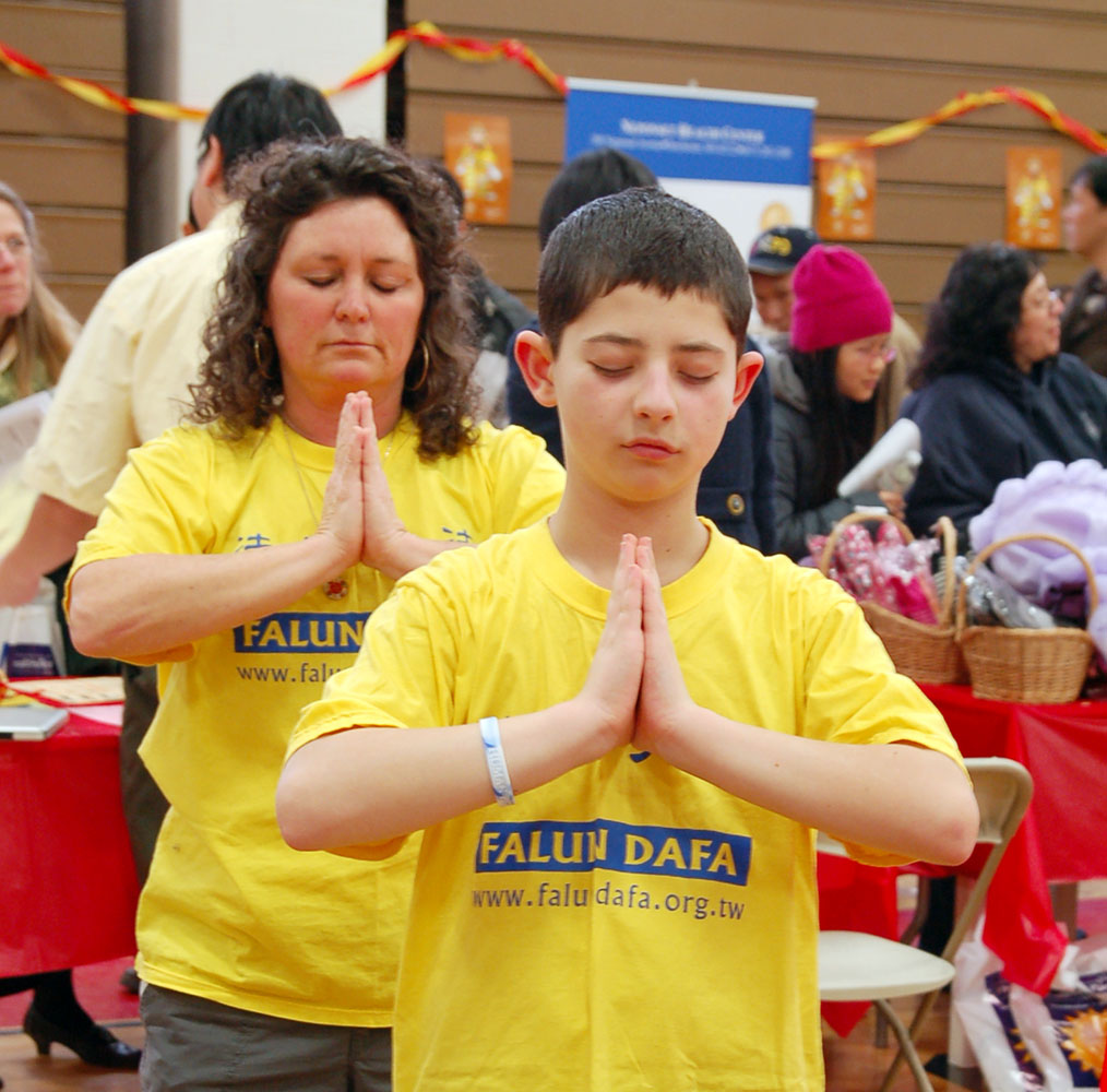 ![]() 法轮功学员在新年庆祝会上展示功法 |