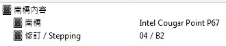 2、用软件测(检测用的软件AIDA64请破网访问下面帖子察看如何下载https://tiandixing.org/viewtopic.php?f=26&t=1482)。出问题的芯片组是B2步进,B3步进的芯片组已解决了问题,用AIDA64检测软件可以检测芯片组步进是B2还是B3.具体步骤是:点击aida64--输入 序列号-- 左键双击 窗口左侧一列的主板字样--左键双击下面的芯片组字样--左键 双击右侧一列上面的南桥字样--在右侧下面的对话框里可以依次看见南桥属性、南桥、修订/Stepping字样,修订/Stepping后面的/右侧就是步进。见图: