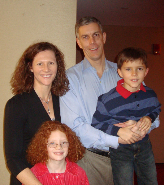 ![]() 美国联邦教育部长阿尼•邓肯偕夫人凯伦与子女观看神韵 |